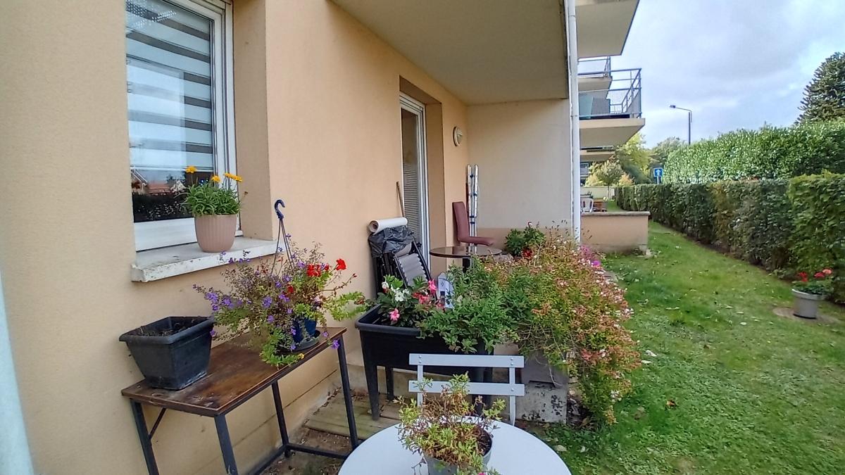 Appartement au RDC d'une résidence sécurisée avec terrasse et une place de parking privative.